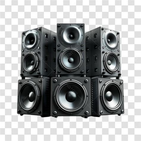 Icone de caixinha de som em tons de cinza escuro e prata com fundo transparente. Ideal para sites e aplicativos de música ou tecnologia. Detalhes realistas e alta resolução.